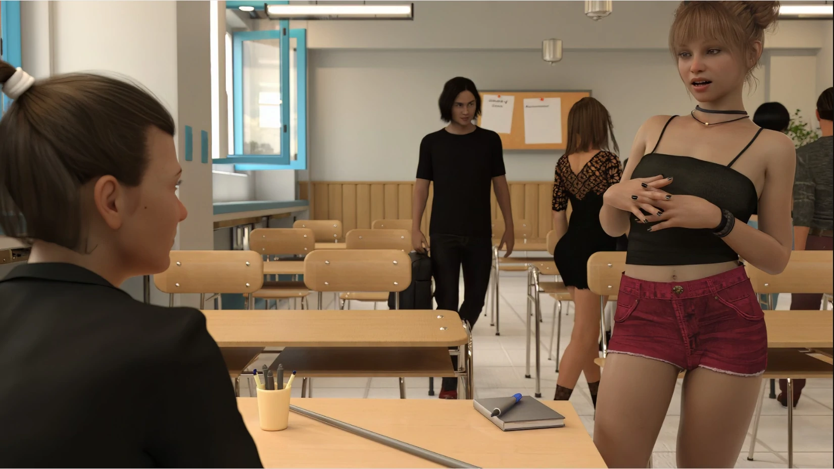 你与父母和妹妹生活在一起,过着上学和与朋友交往的日常生活。
